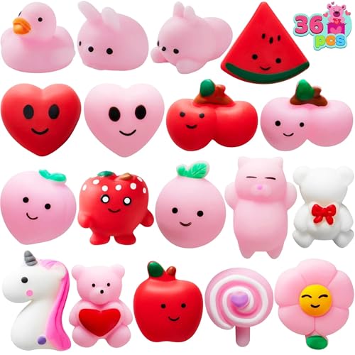 JOYIN 28 Packs Mochi squishy toys with Valentine Cards and Filled Hearts Party Favors for Kids Valentine Gifts Classroom Exchange Kawaii Stress Relief Toys for Valentine Gift Exchange Game Prizesl VALUE SET: Our valuable Valentine party favors set includes 28 cute mochi squishy toy 28 red heart cases and 28 valentine cards featuring 4 designs. Each heart-shaped case was prefilled with mochi squishy toysl FUN VALENTINE: Each mochi squishy toy is cute and uniquely designed pre-filled into translucent plastic red heart shells. Our set also comes with thick paper heart shape valentine’s cards for kids. A fun way to encourage social skill development and a chance to express gratitude to family friends and classmatesl IDEAL GIFT: This unique kids Valentine favors set brings excitement to the occasion perfect mini toys with greeting card to give to your kids who like something cute and extra special. It can also be a great exchange gift for class or small toys prize for classroo