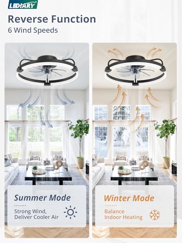 LEDIARY Ceiling Fans with Lights and Remote 20'' Low Profile...