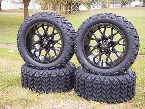 14\" Glossy Black Deep Dish Golf Cart Wheels & Tires Combo 23x10-14 All Terrain/DOT Certified Compatable With EZGO/Club Car/YMH; 5\"or 6\" Lift Kit Required Price in USA