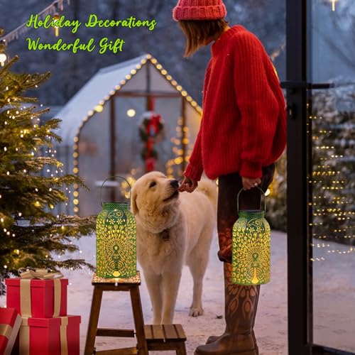 JHPGEOE 2 Pack Outdoor Solar Hanging Lantern Lights - 60LED ...