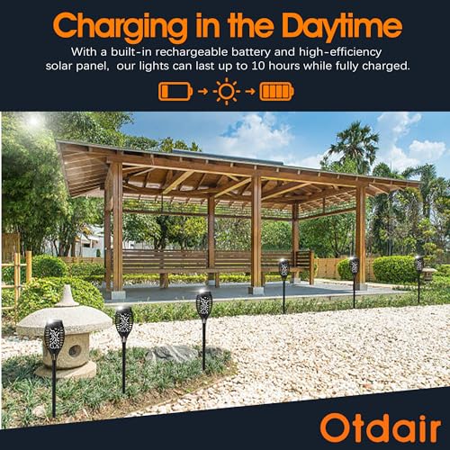 Otdair Solar Torch Lights with Flickering Flame 12 Packs 12L...