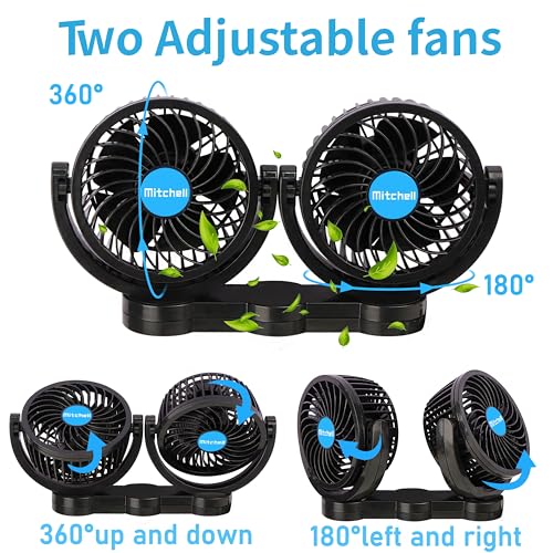 Alagoo 12V Car Fan Adjustable 4 Inches Dual Head Car Clip Fa...