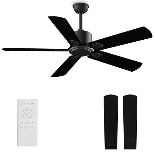 Biukis Black Ceiling Fan with Remote: 52 Inch Outdoor and In...