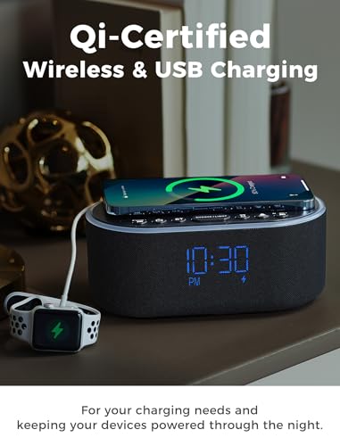 Sharp Digital Alarm with AccuSet - Automatic Smart Clock Never Needs Setting (Midnight Black-White LED) Price in USA