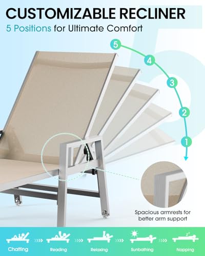 Vexwalx Patio Chaise Lounge Chair Outdoor with Wheels&Armres...