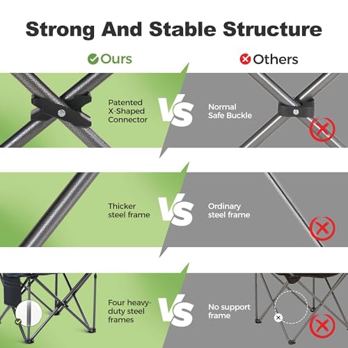 LET'S CAMP Folding Camping Chair Oversized Heavy Duty Padded...