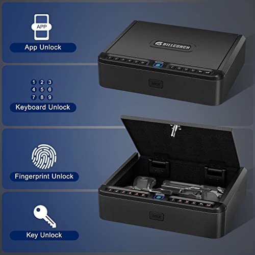 BILLCONCH Smart Gun Safe Biometric Gun Safe for Pistols with Fingerprint/Fulldigital Keypad/Key/Smartphone Lock QuickAccess Pistol Safe for Beside Nightstand Handgun Safe with LCD/Voice Guide Metal Black Updated Version Price in USA