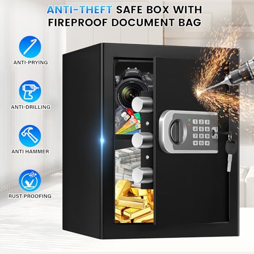 Smartphone ID/PIN Easy Setup:This smartphone connectable featured handgun safe can be unlocked by smartphones. It can also manage fingerprints and passwords and check unlock records LCD Menu Display and Voice Guide USB Charging Gun Safe for Pistols:This fingerprint handgun safe can be quickly accessed via Fingerprint/PIN/Smartphone/Key. Is also ideal for putting it in a car drawer on a bedside table etc.Gun safe nightstand Easy to carry keeps your gun away from children and protect your family and yourself anytime anywhere; Gun Safe for Pistols Materials: The biometric pistol safe had Robust hard carbon steel shell built-in strong steel spring with thick powder coating. Built-in automatic LED lighting allows users to easily access the safe handgun in darkness.