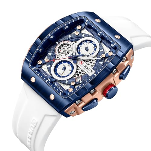 PASOY Luxury Chronograph Watches for Mens Rubber Strap White...