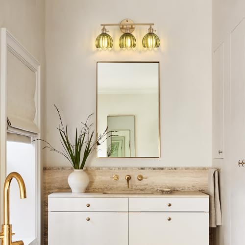 Shenmoyl Bathroom Light Fixtures 3-Light Brass Vanity Wall L...