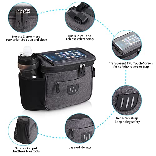 WOTOW Bike Handlebar Insulated Bag Bike Front Phone Bag Cooler Storage Pouch With TPU Touch Screen Insulation Bicycle Frame Bag Strap On Cycling Accessories for Outdoor Hiking Travel Assistants