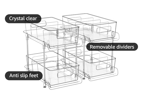 HIHEGD 2 Tier Bathroom Storage Organizer with Dividers Clear...