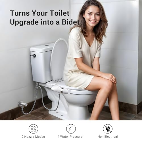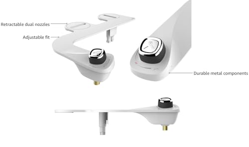 Treat yourself to a bathroom upgrade with the Bio Bidet by Bemis Essential bidet attachment for your toilet. Using the comfort grip control knob you have complete control over the responsive adjustable water pressure. Personalize your wash for women and for men with this easy-to-use attachable bidet. Soothing postpartum care hemorrhoid treatment front and back cleansing are all possible with built-in retractable dual nozzles. All necessary components for installation are provided including the t adapter valve water hose and bidet connectors. Bidet installation is easy no plumber no electricity no batteries and no wiring needed. Easily enhance the functionality of your bathroom on your own with a fast 15 minute install. Built to last the Essential bidet attachment features a quality design built-in brass valve and inlet alongside a braided metal water supply hose. Join the movement! Reduce the need for toilet paper and live a fresh clean lifestyle by switching to a bidet. Fr