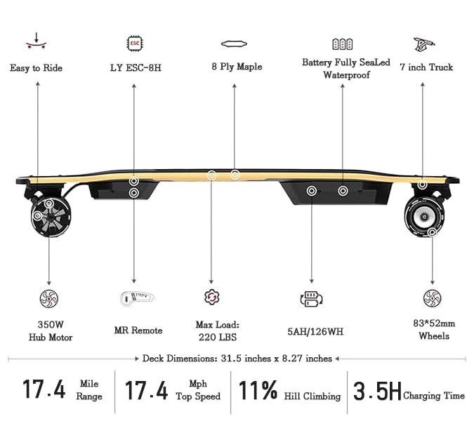 Askate A1 Electric Skateboard with Remote Rang Up to 17 Mile...