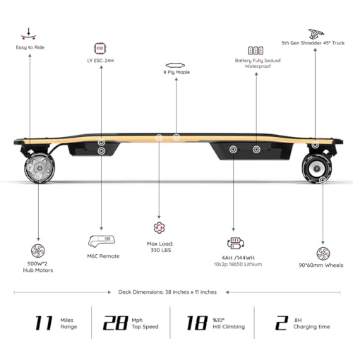 Meepo Electric Skateboard V5 28 Mph 11 Miles Range 500W*2 Hu...
