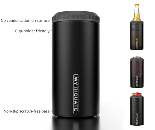 Morefeel 4-in-1 Skinny Can Cooler Double Wall Stainless Steel Insulated Can Holder Works With 12 Oz Slim Can Standard Cans Beer Bottles & As Pint Cups(Black)