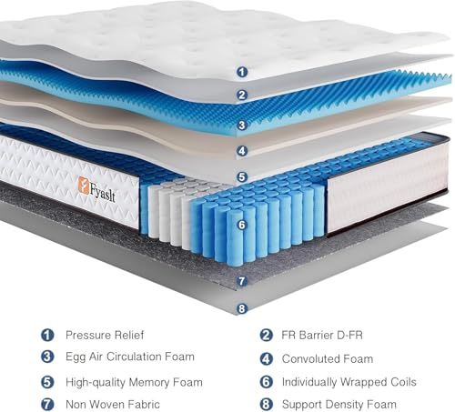 Fyaslt Queen Size Mattress 10 Inch Memory Foam Hybrid Mattre...