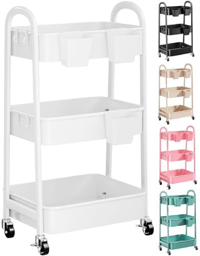 SPACEKEEPER brings to you a 3 tier slide out storage cart. Our multi functional slim storage cart is suitable for narrow spaces widely use for kitchen bathroom office living room to create additional space. Flexible 3-tier storage cart create additional storage in your kitchen laundry room bathroom office toilet living room and any narrow places in the home. The wheels allow the storage cart to glide effortlessly for easy access you can roll it anytime you need. There are 4 heavy duty casters with 360°rotation.The utility rolling cart is well constructed sturdy durable to use for many years.