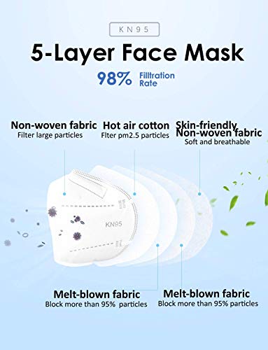 HUHETA KN95 Face Mask 60 Pack 5-Ply Breathable & Comfortable...