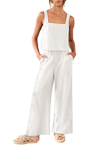 ANRABESS Women's 2 Piece Outfits Linen Pants Jumpsuit Matchi...