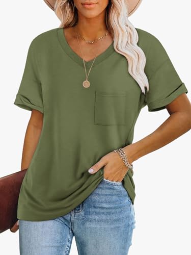 Dokotoo Women's Casual Crewneck T-Shirt - Loose Fit Solid Color Short Sleeve Long Tunic Top Pockets US 12-14(L) Black Price in USA