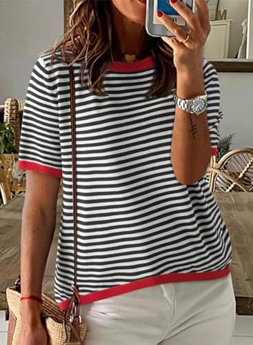 Dokotoo Womens Oversized Tshirts Shirt for Women Spring Summer 2025 Dressy Casual Tops Crewneck T Shirts Loose Fit Short Sleeve Shirts Tunics or Tops to Wear with Leggings Black Shirts for Women L