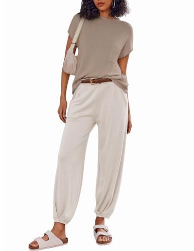 Ekouaer Women's 2 Piece Lounge Set Cap Sleeve Tops and Jogge...