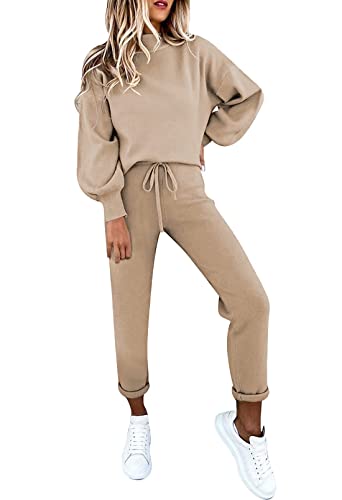 Women's Solid 2 Piece Turtleneck Sport Outfits Long Lantern Sleeve Sweatshirt Jogger Pants Tracksuit Casual solid 2 piece active outfits cozy and stylish Long lantern sleeve turtleneck loose pullover top Stretchy elastic waistline jogger pants Women leisure 2 pc plain tracksuit lounge sets suit for casual daily wear jogging workout yoga sport outdoor Solid two piece long balloon sleeve sweatsuits comfy and stretchy to wear all day long Size chart : (inch) Bust : S40.16 M41.73 L43.31 XL44.88 2XL46.46 3XL48.03 Top length : S24.41 M24.8 L25.2 XL25.59 2XL25.98 3XL26.38 Hips : S37.01 M38.58 L40.16 XL41.73 2XL43.31 3XL44.88 Sleeve length : S15.75 M15.94 L16.14 XL16.34 2XL16.54 3XL16.73 Waist : S25.59 M27.17 L28.74 XL30.31 2XL31.89 3XL33.46 Trousers length : S38.39 M38.78 L39.17 XL39.57 2XL39.96 3XL40.35