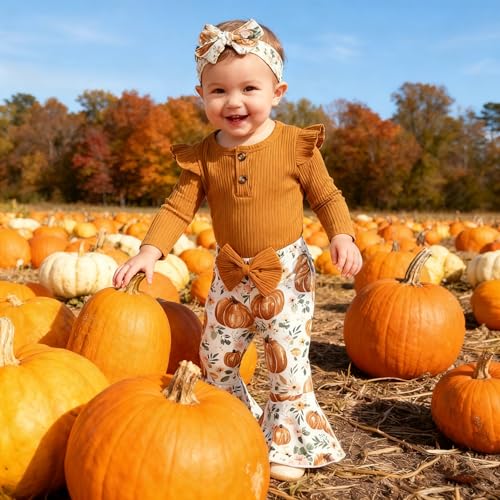 Kuriozud Newborn Baby Girl Bell Bottom Outfit Ribbed Ruffle ...