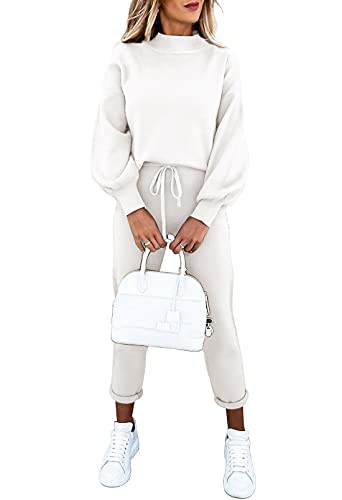 Fixmatti Women's 2 Piece Outfits Long Sleeve Pullover Sweatshirt Jogger Pants Tracksuit White XL