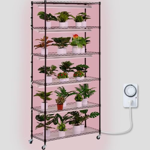 VEVOR Plant Stand with Grow Light 6-Tier Large Tall Plant Sh...