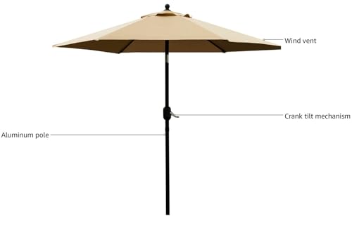 Yaheetech 9FT Garden Table Umbrella with 30lb Patio Umbrella Base Patio Market Umbrella with Push Button Tilt Crank and 8 Sturdy Ribs Outdoor Patio Umbrella w/Base Included Heavy Duty - Tan