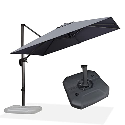 9FT Patio Umbrella with Base Stand 8 Ribs Market Umbrella w/ Push Button Tilt and Crank Outdoor Patio Heavy Duty Market Umbrella Base Stand for Garden Deck Backyard Pool Beach Quick overview: An outdoor patio umbrella set is necessary for enjoying the beautiful weather. To save you from such a sticky and uncomfortable situation this 9ft patio umbrella and resin patio market base stand can be an effective and easy solution. It will create a cool and nice shade over your patio furniture set with a 42"" to 54"" table and 4 to 6 chairs or 2 pool loungers. The market umbrella can be effortlessly opened and closed with a hand-crank and easily tilted in 2 directions with a push at a button. Our resin patio market base stand is wear-resistant and durable capable of long-term usage. All-weather coating expands the lifespan of this patio umbrella base. This is a functional addition to the patio garden deck poolside café and restaurant. Easy setup is required. Packa