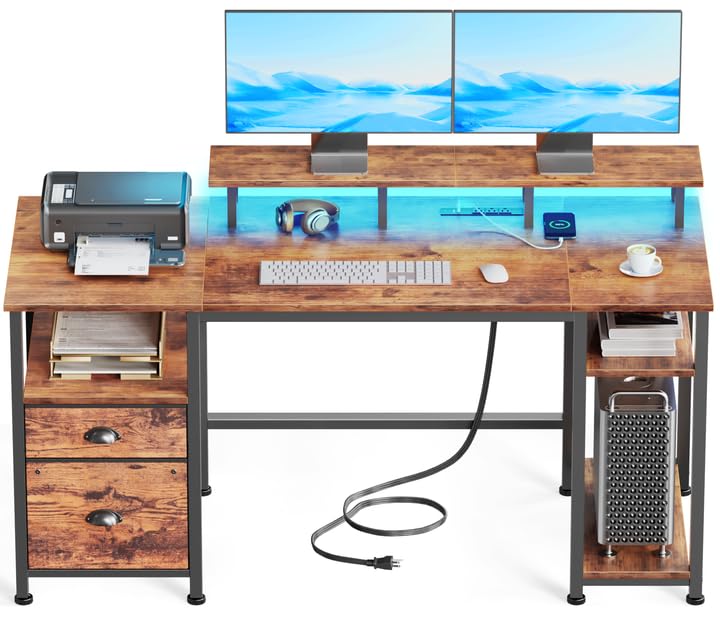 Furologee 61"" Computer Desk with Power Outlet and LED Light...