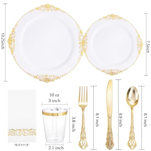 YOUBET- Give you the best quality products give you the most satisfactory shopping experience which is your most correct choice. FOR 25 GUESTS-Allows you to entertain 25 guests.The packaging include 25Dinner Plates 25Salad Plates 25Plastic Forks 25Plastic Knives 25Plastic Spoons. WELL-PACKED-Using sturdy boxes to pack these pink and gold plastic plates and gold plastic silverware there is a bubble bag outside the plastic plates to prevent them from being damaged during transportation. NOTE & TIPS: Our pink plastic plates can hold hot food but it is not recommended to be used in a microwave oven. Although our gold disposable plates and gold plastic cutlery are sturdy it is recommended to wash by hand instead of washing in the dishwasher. If you have any dissatisfaction or suggestions about the product please contact with us we will reply you within 18 business hours. Thank you for choosing YOUBET. Your Best Choice!