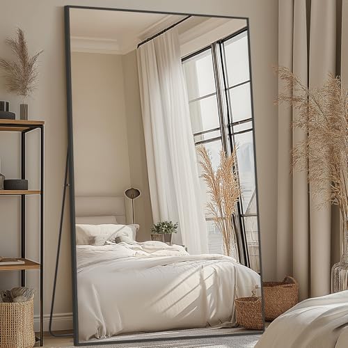 Koonmi 71\"x31\" Floor Mirror Full Length Bedroom Floor Body Mirror with Stand Large Black Mirror Leaning Standing or Hanging Horizontally/Vertically Price in USA