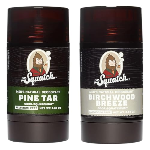 Dr. Squatch Natural Deodorant for Men – Odor-Squatching Men's Deodorant Aluminum Free - Pine Tar + Birchwood Breeze (2.65 oz 2 Pack) Price in USA