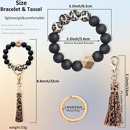 BIHRTC Beaded Keychains Bracelet Silicone Beads Bracelet House Key Ring Bracelet Bangle PU Leather Tassel Wood Eye Bead Wristlet Keychain Car House Keyring Wrist for Women Girls
