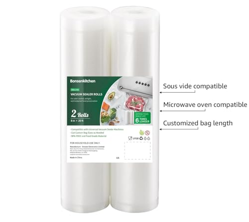 Bonsenkitchen Vacuum Food Sealer Rolls Bags 2 Packs 8 in x 2...