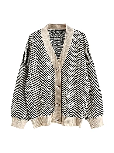 ZAFUL Women's Striped Cardigan Long Sleeve Button Up Open Fr...