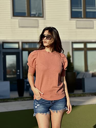 Women's Puff Short Sleeve Sweater Tops 2024 Spring Summer Tr...