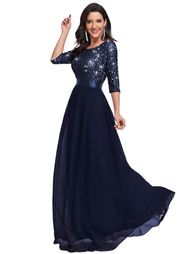Ever-Pretty Women's V Neck Long Sleeves Floor Length Ruched Chiffon Formal Dress Haze Blue US10 Price in USA