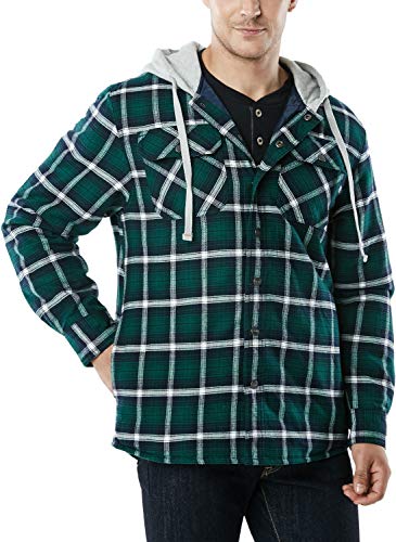 CQR Men's Quilted Lined Flannel Hooded Shirt Jacket Soft Warm Long Sleeve Outdoor Cotton Plaid Shirt Jackets Quilted Lined Full Zip Classic Red Medium Price in USA