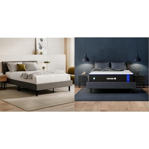Yaheetech Upholstered Platform Bed with Wing Edge Channel Tufted Headboard Mattress Foundation/Heavy Duty Wooden Slat Support/No Box Spring Needed Easy Assembly Navy Blue Queen Size Price in USA
