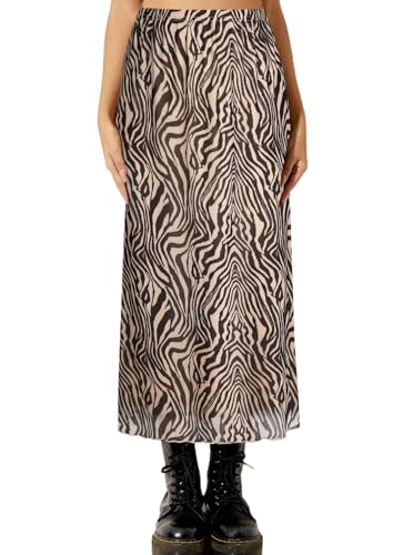 Avanova Women Zebra Print Mesh Midi Skirt High Waisted Flowy...