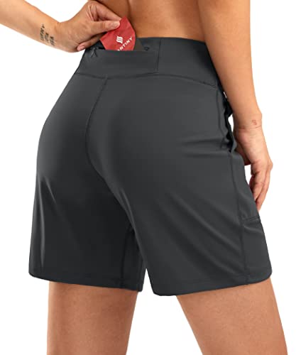 SANTINY Women's 6'' Athletic Long Shorts with 4 Pockets High...