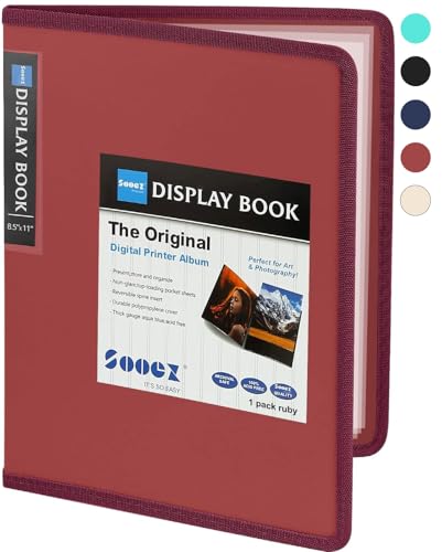 Sooez 30-Pocket Binder with Plastic Sleeves 8.5x11\" (Ruby) Heavy Duty Art Portfolio Folder with Clear Sheet Protectors Display 60 Pages Presentation Book for Artwork Document Organizer Binder Price in USA