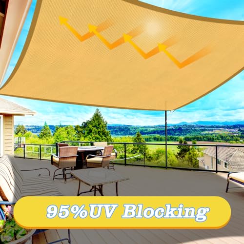 Amagenix Sun Shade Sails Canopy Sand Rectangle Outdoor Shade Canopy 16' X 20' UV Block Canopy for Outdoor Patio Garden Backyard