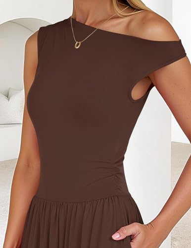 ZESICA Women's Summer 2025 Sleeveless Maxi Dress One Shoulde...