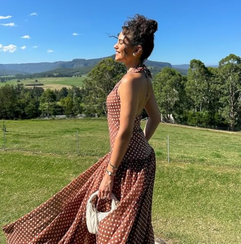 Lingt Chic Women's Polka Dot Maxi Dress Halter Neck Sleevele...